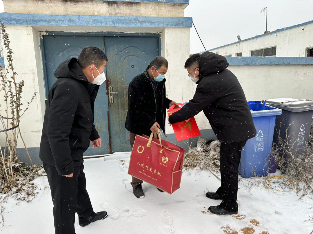 屋外大雪纷飞,屋内关怀情深。每到一户,志愿小分队详细了解了困难群众家中生活情况,防寒物资是否充足,嘱咐他们要注意天气变化,保重身体,并给他们送去了慰问金和米、面、棉被、消毒液、口罩等慰问物资共计2.3万元。慰问中,对于部分高龄老人、有基础疾病人员,结合疫情防控要求,为减少可能出现的交叉感染风险,志愿小分队联系其近亲属在户外送达了慰问物资。