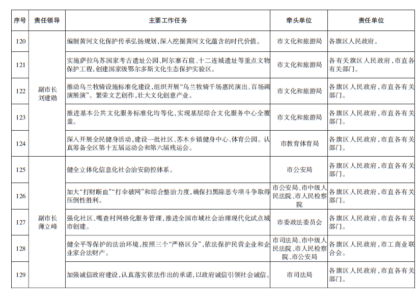 四、各责任单位要积极配合、主动作为,进一步分解、细化各项目标任务,明确量化目标、责任主体、序时进度和具体措施,做到定目标、定责任、定人员,确保各项工作任务按时按要求完成。